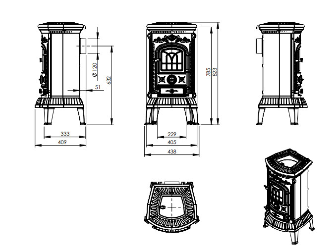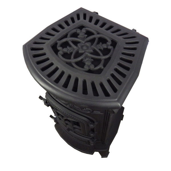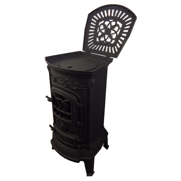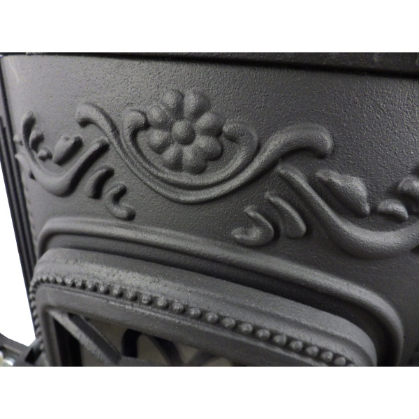 Felhajtható fedlapja miatt, kiválóan alkalmas főzésre és fűtésre egyaránt és a 120 mm átmérőjű, hátsó kivezetésű füstcső biztosítja a hatékony égést és füstelvezetést. A kandalló öntöttvas tűztere kiváló hőtartást biztosít, míg az elegáns, díszített kialakítás bármely otthonban stílusos központi elemmé teszi.